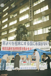 | 6月2日、約230人が後期高齢者医療制度の不服審査請求書を提出(東京都庁で) |