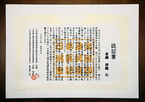 宗谷友の会は大喜び。身崎さんに「認証書」(写真)が渡されました。
