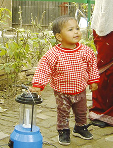 | 幼児が手をかけているのがソーラーランタン |