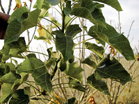 ジェトロファ…インドではバイオ燃料になる植物「ジェトロファ」の栽培実験を進めていた。肥料も水もない荒れ地で育つのが特徴。食用にならず、農地も不要なので、食料問題と競合しない。今後、土地の緑化と燃料確保に役立つことが期待できる。