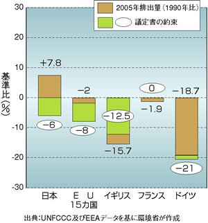| 図2 各国の温室効果ガス排出状況 約束値と比べると |
