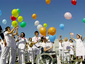 | 9月9日「全国一斉9条守れ」行動で、平和への願いこめて(長野中央病院屋上から。撮影=長野医療生協・新村紘士通信員) |