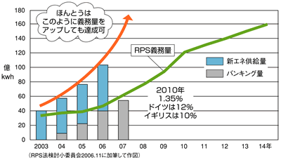 図2 電気会社に義務づけた目標が低すぎて新エネルギーの伸びは頭打ち |