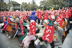 | 後期高齢者医療制度に“レッドカード”(後期高齢者医療制度の廃止を求める東京大集会で) |
