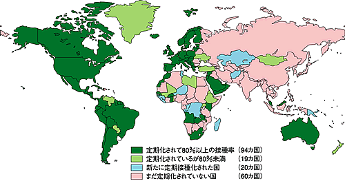 | 図3 ヒブワクチンを定期接種している国とその接種率(2007-08年) |