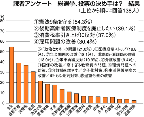 そこで今回、本誌読者からアンケート。総選挙で、1票にどんな思いを込めるのか? 3割以上の人があげた4つのキーワードを中心に、ご紹介。「私ならコレ」なんて、話題にしていただければ。