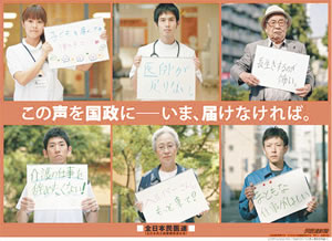 | 「政治を変えに行こう」とよびかける全日本民医連のビラ |