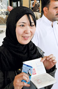 | パスポートを手に、5年ぶりのイラク入国を喜ぶ高遠さん(4月21日) |
