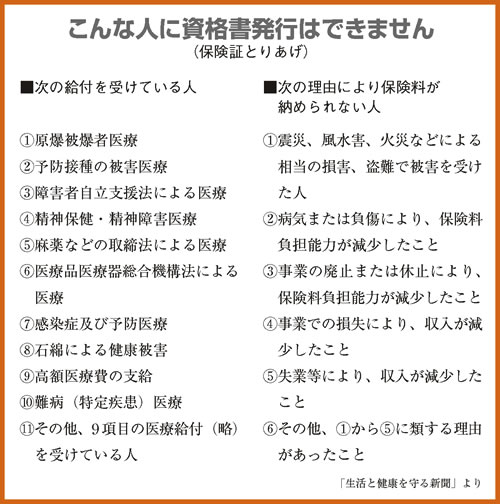「こんな人から保険証をとりあげてはいけない」とされている項目を紹介します。制度 廃止を求める声を引き続きあげながら「困っている人はいませんか?」 の、声かけも大切です。