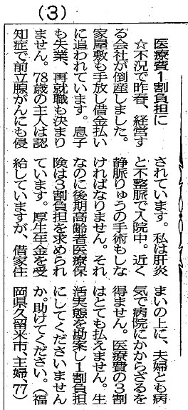 “助けて”の投書、医療費減免の相談にのる