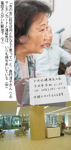 金沢駅の地下にいたところ、見知らぬ女性から、テレホンカードとともに手渡された、という話でした。友の会メンバーが市役所に同行し、生活保護を申請。路上生活を脱することができました。