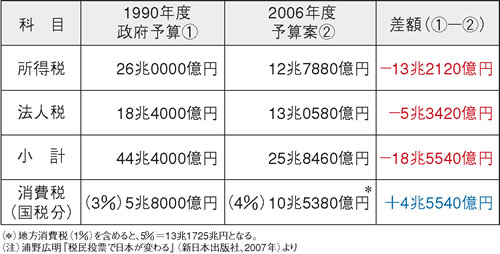 | 表1 1990年度と2006年度の主な国税の比較 | |