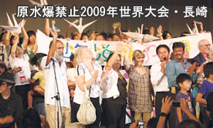 来年五月、アメリカ・ニューヨークで開かれるNPT(核不拡散条約)再検討会議に向け、「核兵器廃絶」への地球的な世論と行動を作りあげようと、決意を固め合った世界大会。