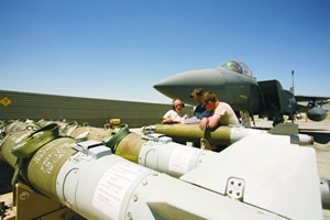| アフガニスタン最大の外国軍基地・バグラム空軍基地の飛行場。爆弾をF15戦闘機に積み込む。1日10回以上爆撃に飛びたった |