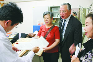 | 後期高齢者医療制度廃止や生活保護母子加算復活などを求めて民主党議員を訪問した千葉の友の会員ら(9月16日、中央社保協の国会行動で。撮影=多田重正記者) |