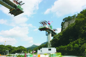 | 税金の無駄遣いの焦点になっている八ツ場ダム。写真は、町沈没後にダム上を通る予定の橋(群馬県長野原町。撮影=民医連新聞) |