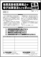 後期高齢者医療制度とセットでおこなわれてきた「医療費適正化」の地方押しつけも相変わらずで、公立病院の統廃合も止まっていません。地域から病院がな くなる、医師も看護師も足りない、介護の受け入れ先もない。ですから医療崩壊や介護崩壊を打開する運動を、国政はもちろん、地域でも広げることが大事だと 思います。