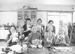 東萩尾班は大牟田市の郊外にある団地を中心に作られています。班会は、毎月第4水曜日 に班長宅で。ご近所の会員さんが時間前からぽつぽつと集まり始めます。世間話から、病気や暮らしの話しなどガヤガヤと次第に声も大きくなり話しが弾んでい きます。いつもあっという間に時を忘れて楽しい時間が過ぎていきます。