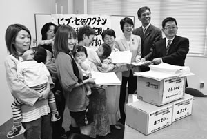 | 署名を提出した新日本婦人の会のお母さんたちと(10月21日) |