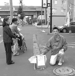 一〇月八日におこなった調査では、二二カ所がチェックされた。歩道の凸凹や点字ブロックの摩耗、放置自転車、点字ブロック先に駐車場のある危険な個所が あった、要望をまとめ、札幌区役所に提出することにしている。