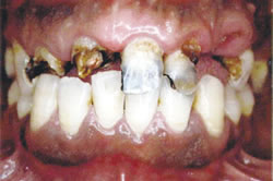 ■無保険・国保資格証…医科で問題になっている「国保」の問題 は歯科でも。アルバイト生活で国保料の支払いまでお金が捻出できず、無保険になっていた五〇代男性は、二四本の歯のうち、一六本がひどい虫歯でした。奥歯 は正露丸を詰めて痛みを我慢していたため、黄色く変色。冷蔵庫も冷暖房もない住居に住んでいました。