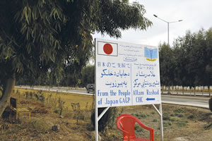 | 治安の悪いカンダハールに日本からの支援を公然と掲げる立て札が立っているのは驚きだ。地元の人々から、いかに支持された活動をしているかの証である |