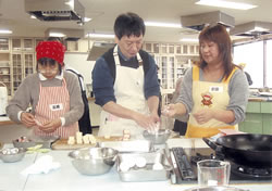 当友の会では「男の料理教室」を3カ月に1回開いています。今回は若手職員が、3人参加しました。