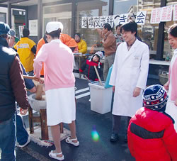 仮店舗での営業再開(三月一日)に先だって、病院周辺地域の方々にお知らせとお詫びをかねて、地域訪問を実施。北海道各地の法人から二一人、職員三八 人、友の会会員三人が参加し、一一四三件を訪問しました。皆さんから「わざわざ来てくれてありがとう。健康に気をつけて」など励ましの言葉をいただきまし た。