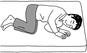 腰痛が強くないときや筋肉疲労の原因が思い当たるときは、他に症状がなければようすをみてよい でしょう。急性腰痛の場合、2週間で8割の患者さんは症状が改善するそうです。一般的に膝を曲げて横向きになり、腰の負担を軽くした姿勢で2~3日安静を 保つと痛みは徐々に軽くなります。その後は無理をしない範囲で日常生活に戻していきましょう。そのほうが回復も早くなります。