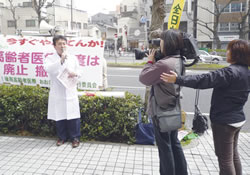 保険医協会の医師も参加し、地方局のテレビカメラも取材に来ていました。「もう一社来ると言っていたけれど、まだかな」とディレクター。マスコミの関心も高いのでしょう。