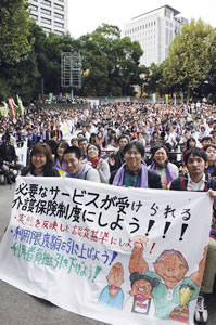 | 医療・介護改善を求めておこなった集会 (2009年10月22日 東京・日比谷 民医連新聞提供) |
