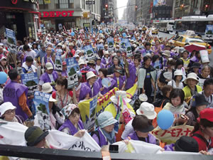 世界中のほとんどの国々の政府代表が参加する再検討会議にあわせて五月二日、ニューヨークに世界中の市民が集い、反核大集会が開かれました。