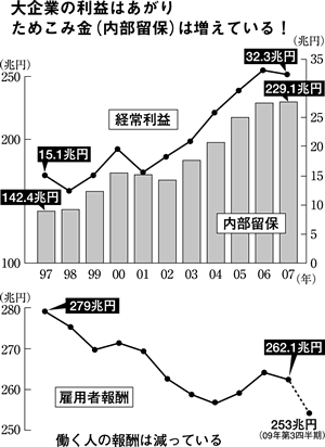 いま、輸出が回復し、大企業などの企業収益は猛スピードで回復しています。しかしその企業の利潤は、儲けの見込みがないから次の投資に向かいません。