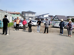 当勤医協糖尿病患者会では、「日常的に運動をとり入れたほうがいい」との医師の助言もあり、誰でも気軽にできるノルディック・ウオーキングに挑戦することに。五月二九日、同じ勤医協の「ノルディックウオーキング友の会」と合同で会合を開きました。