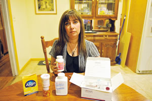 | スザンナさんは月に薬代だけで125ドル(日本円で1万円余)もかかってしまう。父も母もがんで亡くなった |