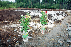 | 埋却地には花が手向けられていた。腐臭とまではいかないが、嗅いだことのない異臭が鼻の奥に残った |