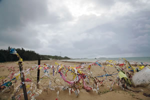 辺野古「移設」が閣議決定された五月二八日以降、キャンプシュワブ正門前では、毎週木曜日、早朝抗議集会がおこなわれています。七時半~八時半の一時 間、基地「移設」に抗議するメッセージをフェンスに張っています。張るのはこの一時間だけで、終了後は撤去します。「張りっぱなしだと米軍に捨てられてし まうから」という智恵。「移設」断念まで、何度も繰り返す。「メッセージはどんどん増えて、張り出すと最初は五〇メートルぐらい続いていたのが、いまでは 一〇〇メートルほどになった」と伊波さん。ここでも非暴力・不屈のたたかいが、おこなわれています。
