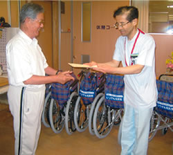 当友の会では、『元気』の還元金で車いすを五台購入しました。この度、健和会病院へ寄贈する贈呈式をおこないました。