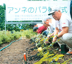 八月九日の長崎原爆の日にあわせて、当施設で「アンネのバラ」の植樹式がおこなわれました。利用者や職員、ボランティア約一六〇人が参加しました。