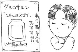 これとは別に、アメリカの国立衛生研究所が変形性膝関節症の臨床研究をおこなっています。グルコサミン単独で服用した場合と、コンドロイチン(ムコ多糖 の一種)と併用した場合の効果を、有効成分の入っていない偽薬を服用した人たちとの間で比較。24週間服用してもらい、痛みの軽減効果を調べました。また 24カ月間服用した後、軟骨の磨り減り具合も調査。いずれの結果も、単独・併用、偽薬との間に差はありませんでした。