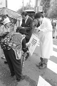 実施されて二年半以上が経過した後期高齢者医療制度。一〇月四日の「市」の日、東京・巣鴨で街の声を聞きました(写真)。