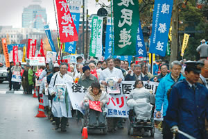 | 国民の世論と運動が政権交代をもたらした(08年12月、都内の集会デモ) |