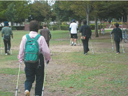 二本のポール(杖)を使って歩く運動は、ただ歩くだけとは違い、ポールを持つ腕、足運びなどに適度な負荷がかかります。