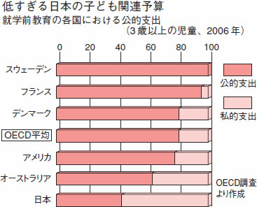 新システムは、こうした現状も口実にして導入されようとしています。しかし、国は責任を持たず、安上がりに保育を済ませようというのでは、待機児童解消 にはなりません。受け入れ人員、職員配置、安全などにかかわる国の基準も自治体まかせ。その上、保育分野への営利企業参入まで許せば、お金のある人はサー ビスの充実した保育所に、お金のない人は狭いスペースに押し込められたり、そもそも子どもを預けられないという事態がすすみかねません。