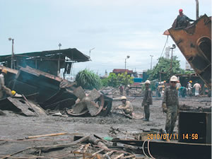 船舶解撤業は、もっぱら人力です。労働者たちは、たいへんな危険にさらされながら働いており、アスベストの吸引もその危険の一つです。