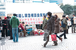 これに対し「周知も対策も不十分」として、同期間中「年越し派遣村が必要ないワンストップ・サービスをつくる会(ワンストップの会)」(代表=宇都宮健児弁護士)が新宿駅頭でとりくんだのが、「年越し緊急相談会」です。
