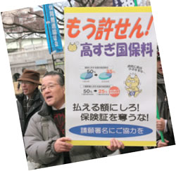 さらに一月、政府は保険料算定方式を「旧但し書き方式」に一本化する方針を決め、国保料アップに拍車をかけています。