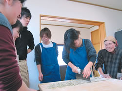 一二月二九日、医系学生たちの「そば打ち体験&医療生協組合員との交流企画」をおこないました。医学生二人、看護学生六人が参加しました。