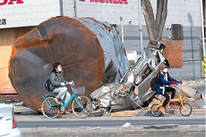 | 津波の爪あとがいまも残る街並み |