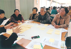 その後、四グループにわかれて討論。「組合員になってよかったこと」については、「いろいろ学習できた」「仲間ができた」「入院時に差額ベッド代をとらないのがすばらしい」と。